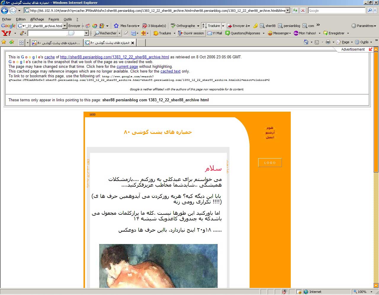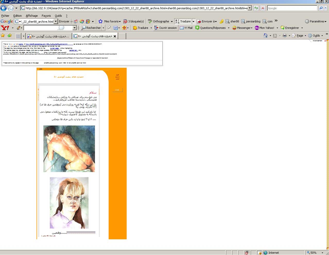 با این ترجمهی معمول و به دور از اغماض که هر مترجمی در باب ترجمه به این کل دست خواهد یازید. ولی ترجمهی غلط آن هم در این مورد سلیقهای خاص را میطلبد که این سلیقه در مقام عدم وفا بر آمده و متن را به صورتی غیر متعارف ترجمان کرده و قص علا هذا. از این جا به بعد با تدقیق در سابقهی مدعی و متهم در تبصرهی لازم و ملزم ادامهی بحث میدهم. رسیدن و کشف و درک این مهم باز به مطالب و نسخی که از هر دو فرد در مراکز و مقاطع مختلف طبع شده بود و در دسترس این جانب بود فراهم آمد. در این مطالعهی اجمالی به غیر متعارف بودن جملات و کلمات و تعبیرات و انقیادات و تحقیقات سعید احمدزاده اردبیلی میتوان به ید طولا در غیر معمول و بیربط بودن و عدم تعارف ایشان در نسخشان یقین کرد. دقت کنید به نویسش سعید احمدزاده اردبیلی در متن خیانت به خنثایی با حروف اضافه و عطف و ربط بیربط در این متن و البته به مجموعهی نه حتا اگر فراموش کرده باشم به دقتاش. و به پراکندههایی از مانا جعفری در تارنمایش دقت کرده و نتیجه را به قیاس شخصی بگذارید. چنان که من این را به مخاطب واگذاشتم. پس دو نفر در نوشتن این سطور در قالب ترجمان نمیتوانند یک جور باشند و بسته به سابقهای که از هر کدام مطبوع در مطابعهی مختلف شده میتوان پی به صحت و سقم ادعا و اتهام برد . همچنین لازم به یادآوریست که دو تصویری که در حافظهی موتور جستجوی گوگل باقی مانده، نشان میدهد که در ماه اکتبر 2006 / مهرماه 1385، یعنی تاریخ آخرین بازدید گوگل از آن تارنما، هیچ اثری از ترجمهی شعرهای ریچارد براتیگان دیده نمیشود. این در حالیست که ناما جعفری ادعا میکند که این ترجمهها را در اسفندماهِ 1383 در تارنمایش منتشر کرده است. انگار آقای جعفری حساب این قسمت را نکرده بودند: تصویر شماره یک / تصویر شماره دو. با این استدلالات هم صرفن تنویر اذهان عمومی را خواستار بودم و لاغیر. علا ایها الحال ناما جعفری مدعی را به دقت بیشتر دعوت میکنم و امیدوارم که من بعد الآباد حداقل قبل از ادعا خودشان یک مرتبه مطلب مورد ادعایشان را مطالعه کنند و همیشه مخاطبان ادعاهای کذبشان را آن گونه که مسبوق به سابقه است چون خود فرض نکنند. چون مخاطب و خوانندهی اندیشمند هیچ گاه عینیتها و استماعات را صحت ننهاده و خود در کشف و شهود بر خواهد آمد. چنان چه روان گویا را کمال معرفت حق است و دانستن حقایق و چون روان را آن حاصل آید کمال اعلای او از نور حق است.