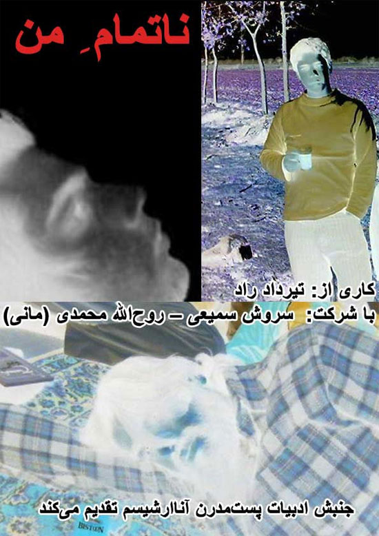 ناتمام ِ من نویسنده: تيرداد راد چاپ نخست: سايت ادبی عروض چاپ دوم: نشر شعر پاریس - مرداد 1386
